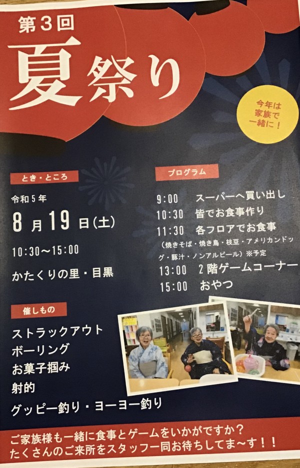 今週の19日(土)は、ホームの夏祭りが開催されます♬