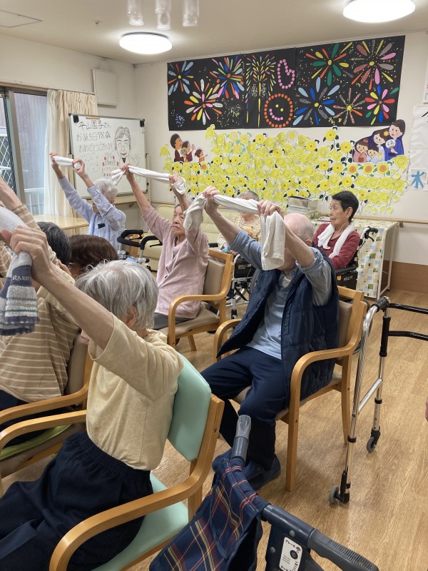 タオルを使っての体操です。