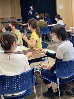 途中、後出し負けじゃんけんを2人1組になって行い、認知症の混乱の症状について考えました。