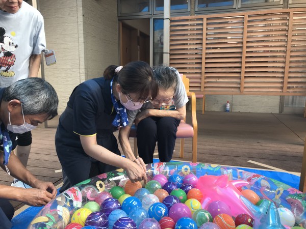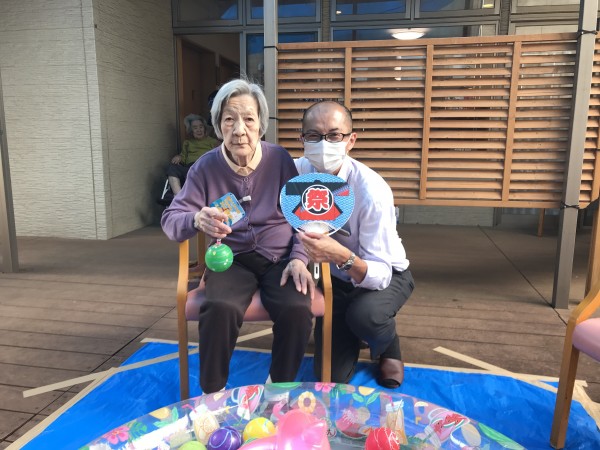 神輿の後はウッドデッキにてヨーヨー釣り‼