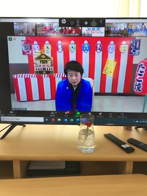 先日、リモート盆踊りに参加しました。事前に御利用者様にうちわを作って頂き、「花笠音頭」と「東京音頭」オリジナルの振り付けで。