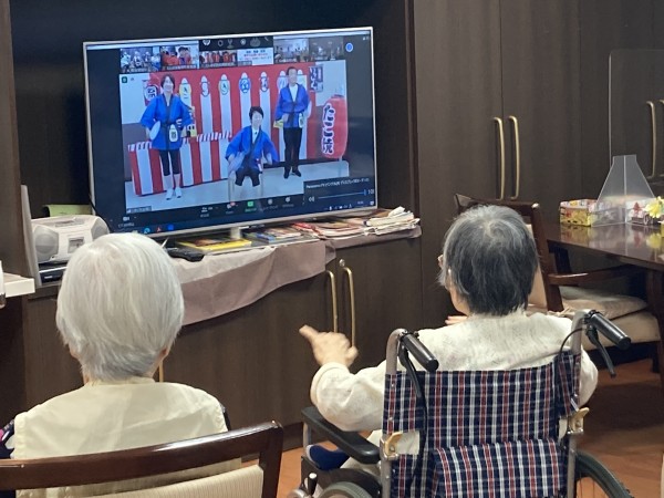 先日、リモートで各事業所を繋いで、「いきいき盆踊り」が開催されました。