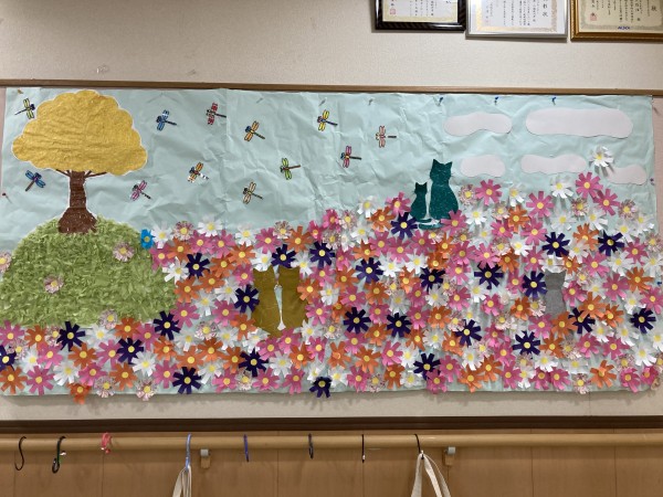 今回はコスモス畑をイメージしてご利用者様にご協力いただき、完成することができました(^^♪