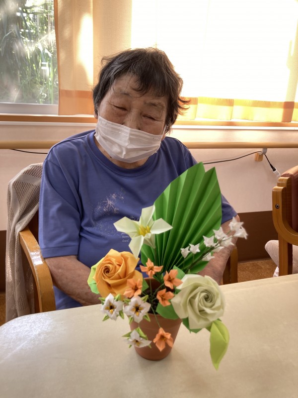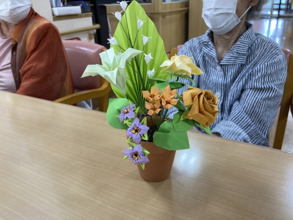 遊・東浦和では先日、皆様で折り紙のお花を活けました(^^)