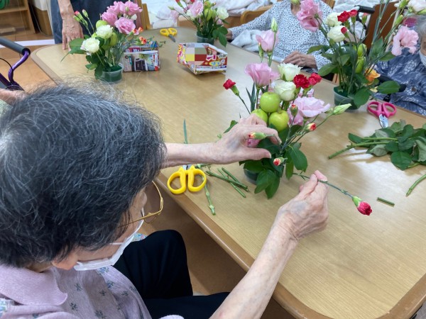 1階デイサービス主催!フラワーアレンジメント教室に参加しました♪