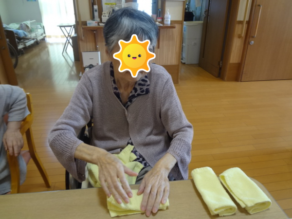 運動後は皆さんに洗濯物をたたんでいただきました(^^♪ 家事は得意ですね(^^)/