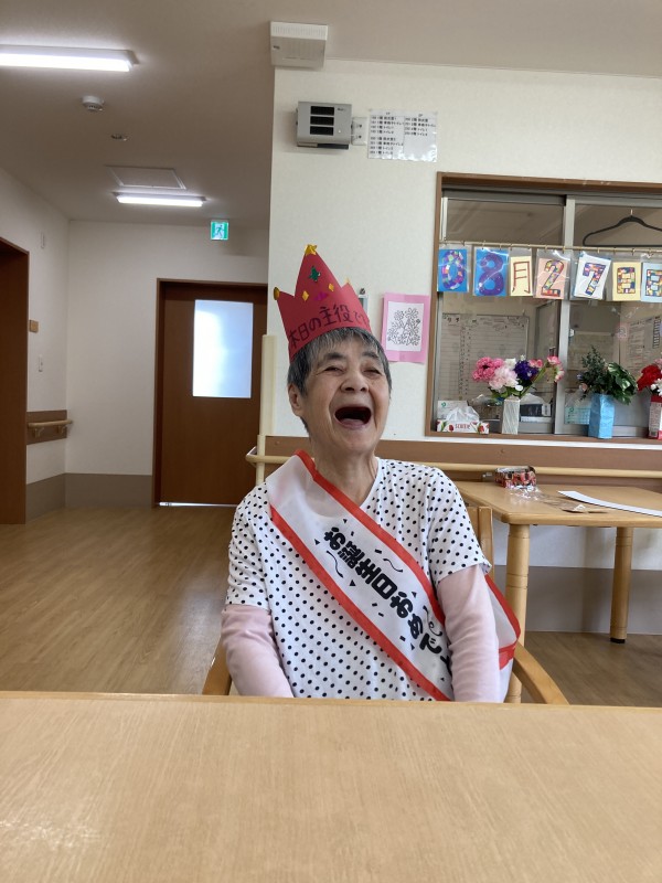 始めは、「祝わなくていいのに」と仰っておりましたが職員や他のご利用者様からの歌のプレゼントを