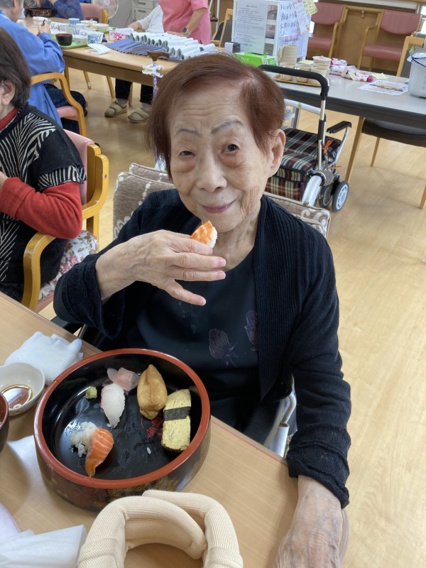 今はスーパーでもお寿司は売ってるから家で食べるけど、家で食べるのと違ってみんなで食べるから美味しいよね!というお話をされているご利用者様もいて確かにそうだなぁ。と思いました(^^♪