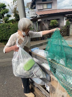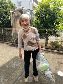 ゴミ捨てを手伝って頂き、一杯のヤクルトを楽しまれる♪