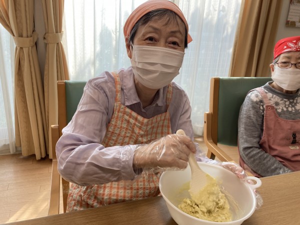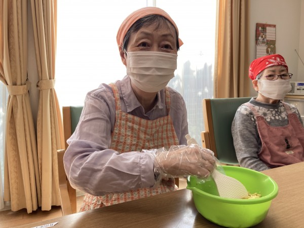 「おやつレク!さつま芋ンブランケーキを作りました」~グループホームみんなの家・横浜今宿の介護ブログ~