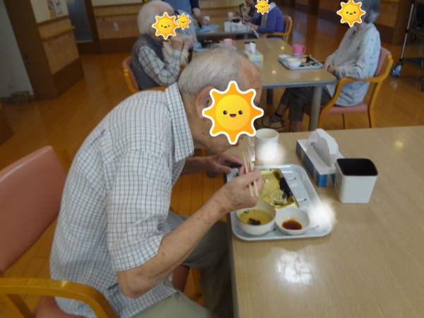 3時のおやつはスタッフが作ったかいしきを敷いておやつを召し上がって頂きました(^^♪ こちらも表情が伝わらず・・・残念です(/ω\)