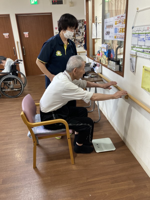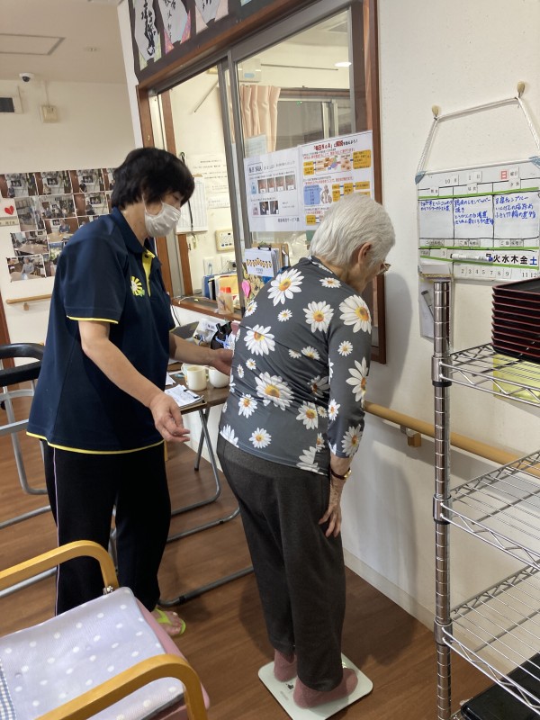 また、車椅子の方は本部の方が作ってくれた、車椅子ごと台に乗り測っています(^^♪