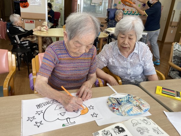 ホームも少しだけ、ハロウィーンの飾り付けをしたので、入居者様もちょこっと変身です。