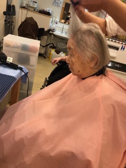 美容師さんと相談しながら、今日はどんなふうにしますか?とのお尋ねに楽しそうに受け答えされていました。