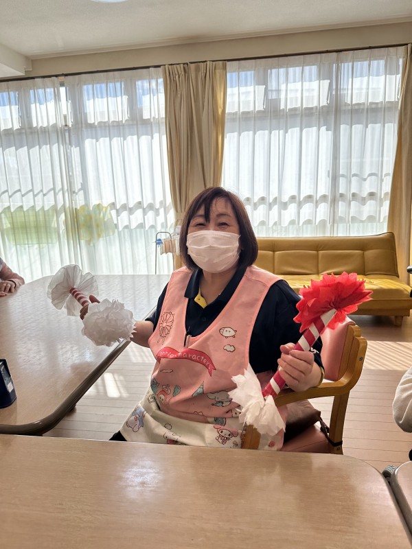 運動会前に手作り応援グッズで盛り上げてくれるケアマネージャー☆