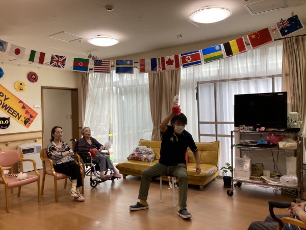 入居者様も応援グッズで応援!!