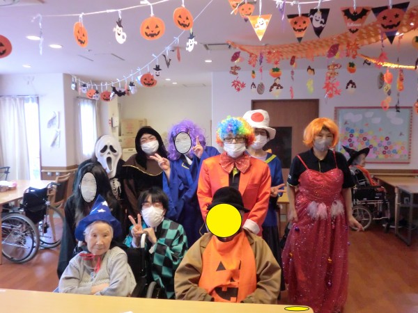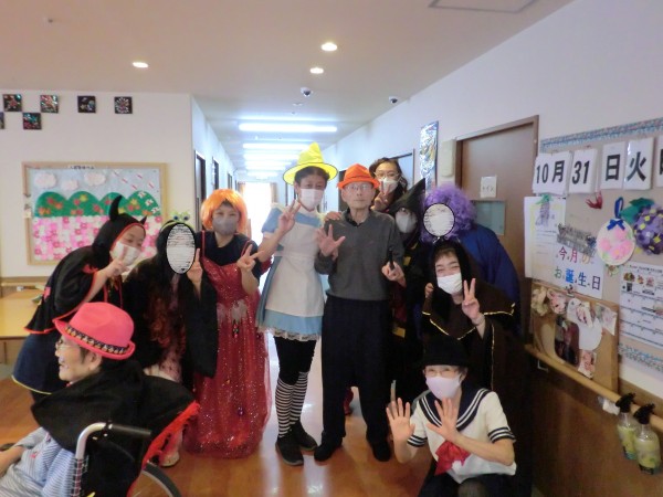 本日は10月最終日ということで、ハロウィンを味わって頂こうと職員仮装による練り歩きを行いました!