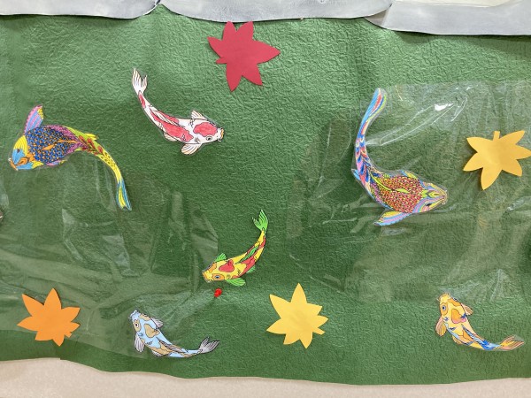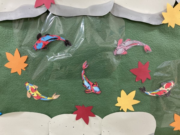 池にいる鯉はご利用者様が塗ってくれた塗り絵を切ってラミネートしました(*'ω'*)