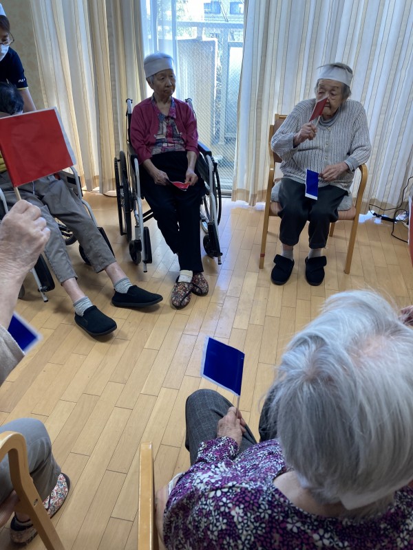 単純な「赤上げて、青上げて」という掛け声にはみんなさん、ぱっ‼と反応されていましたが、ちょっとひっかけで「赤上げないで青下げない」