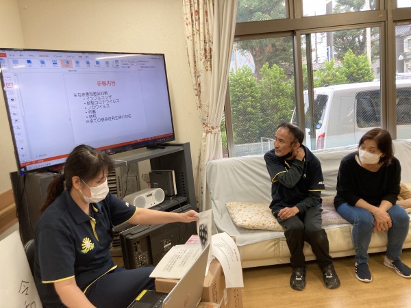 インフルエンザも流行り出し、私たちの身近な5つの感染症の予防や対応、どんな特性があるのかを職員でおさらいしました。