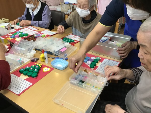 ペットボトルのキャップを折り紙で包んで作っていきます。