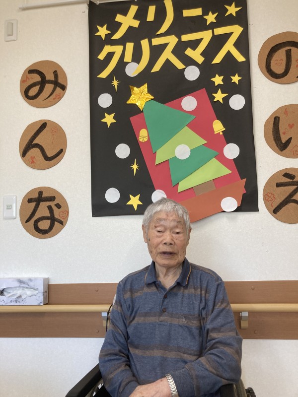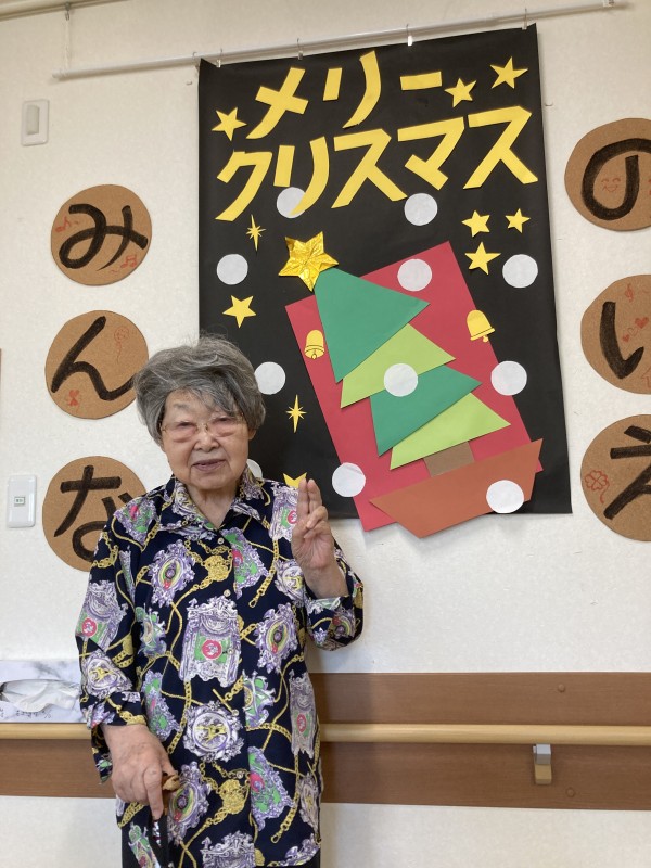 最後に皆様が作ったクリスマスの壁画を飾りお一人ずつ記念撮影をしました。