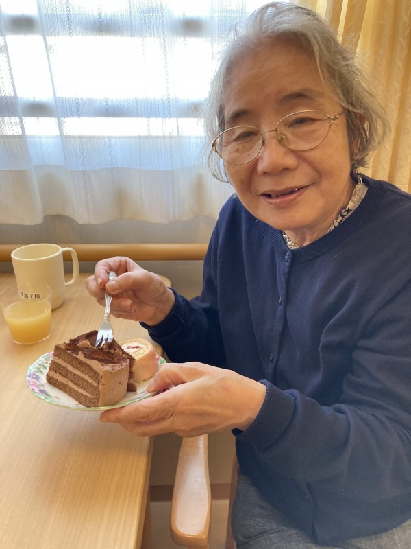 いつもは食が細い方ですがお気に召されたのかケーキのお代わりを希望され、ぺろりと完食されていました!