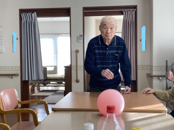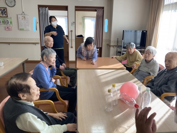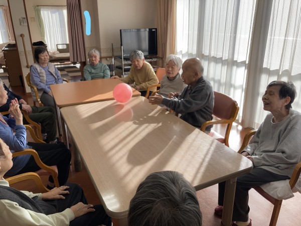 職員からの「もう少しでおやつの時間ですが、皆さんどんなおやつが食べたいですか?」の言葉かけに、「ケーキ!」、「たい焼きが食べたい!」、「たこ焼きがいい!」と、皆さんそれぞれに食べたい物を答えながらボールを投げていただきました(*^^*)