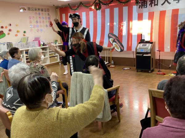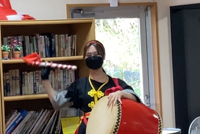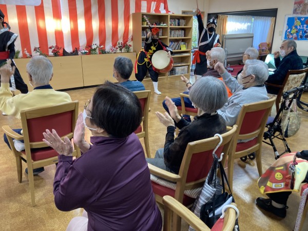 そして館内に響かせてくれた太鼓の音に惹かれて、居宅の職員さんや厨房の職員さんまで見に来て下さいました(^^)v