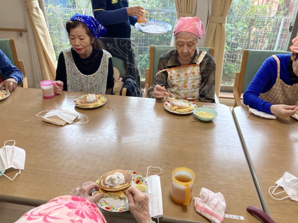 ホットケーキ作り&召し上がっているご様子をお伝えします♪