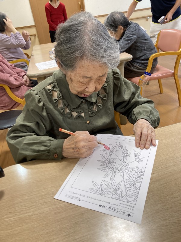 今回は、秋の紅葉塗り絵の様子です。