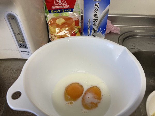 しっかり粉と牛乳、玉子を混ぜ合わせます!!!