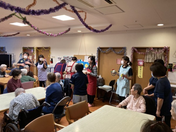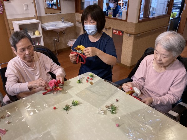 12月12日に近くの三保1のホームにてオレンジカフェを実施今回は新年飾り作りを行いました。数名ホームからも参加させていただきました