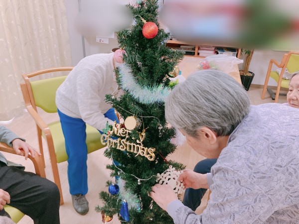 先日、午後のレクリエーションでクリスマスツリーの飾りつけをして頂きました(^^♪