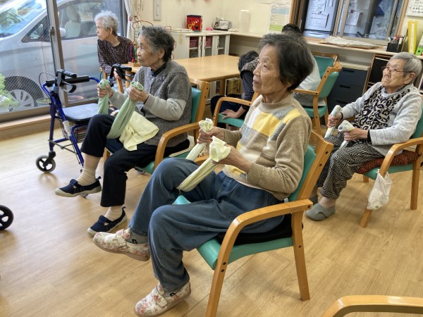 握力の維持として、レクリエーションでも指先を動かす体操を積極的に取り入れている成果かもしれません。