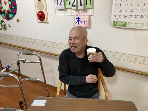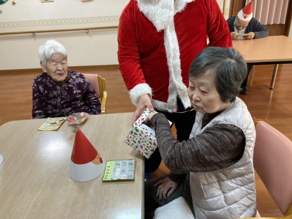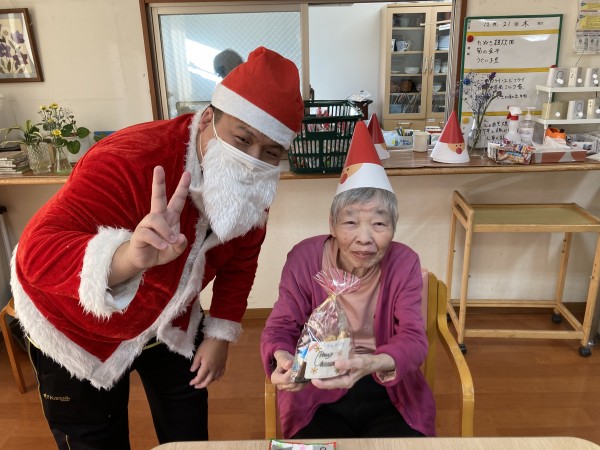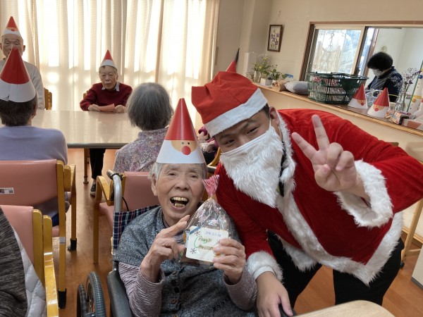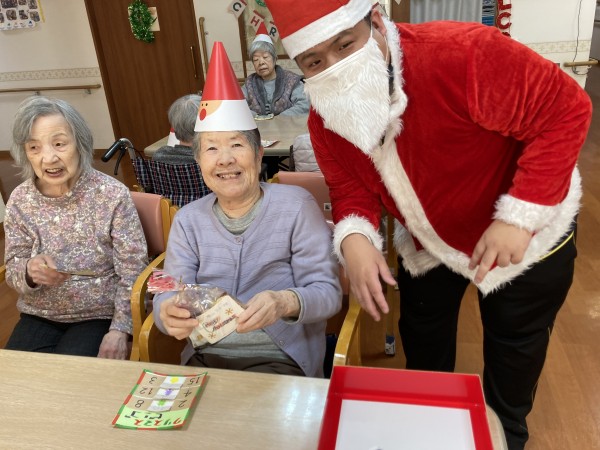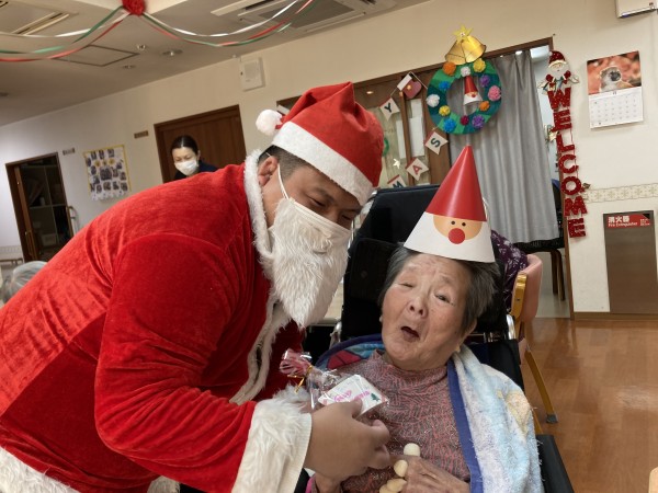 ケーキを召し上がっていると、一人の利用者様が立ち上がり、「サンタさんに挨拶がしたい」と・・・