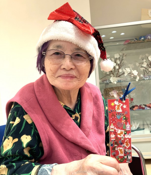 クリスマスが近かったという事で、ご入居者様にはクリスマスの気分を感じながら、お茶菓子を召し上がったりしおり作りを行いました♪
