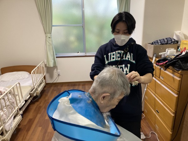 年末のことですが、ホーム内で訪問理容ヘアーカットをしました。
