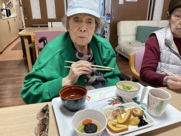 遅ればせながらお正月のおせち料理を食べているご様子を紹介させて頂きます。