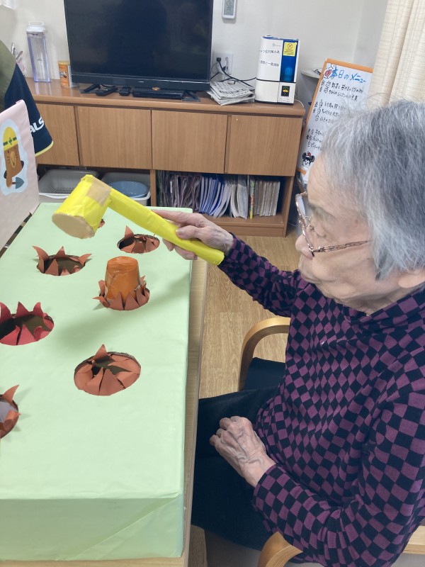 今回はスタッフの作った、モグラたたきゲームをしました。