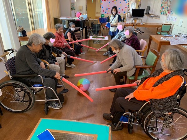 今日のレクリエーションは『棒サッカー』