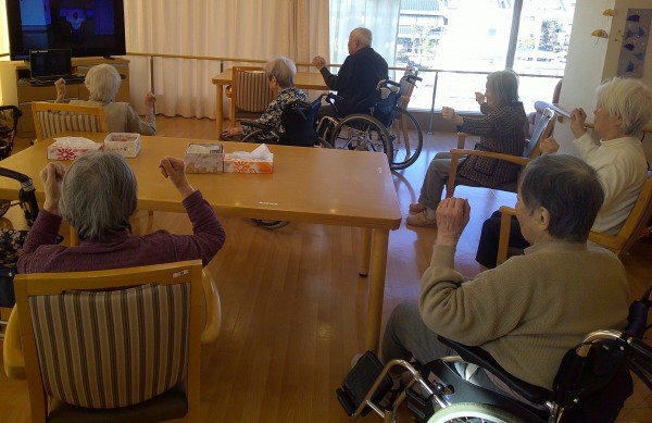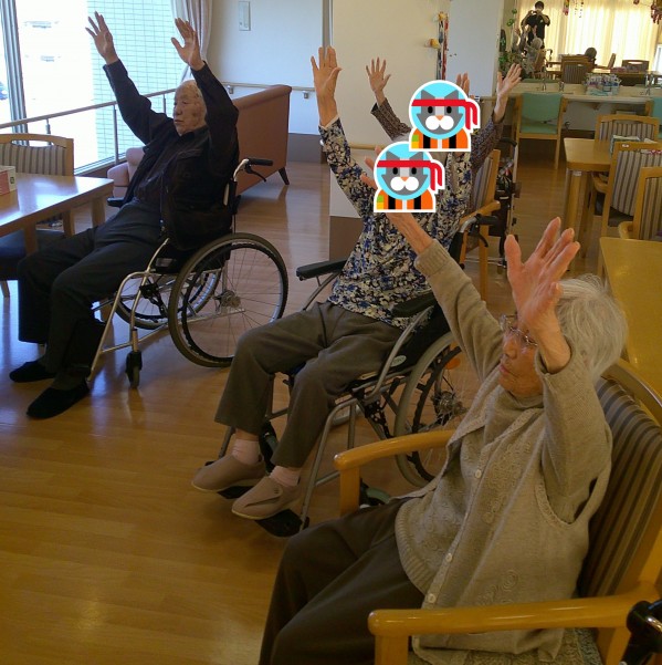 今回は、3階の食堂に集まってもらい、 みんなで楽しく、体を動かしました。