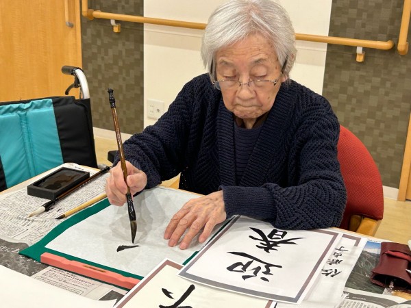 【アミカの郷ちとせ】今年初めてのお書初め(書道レクリエーション)