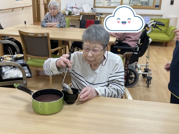 2月も半ばとなりましたが、以前おやつレクで行ったお汁粉作りの様子について