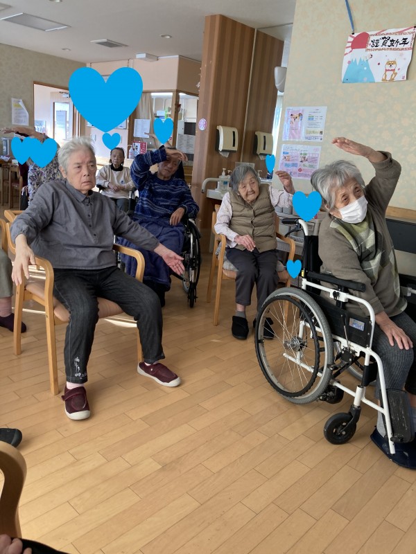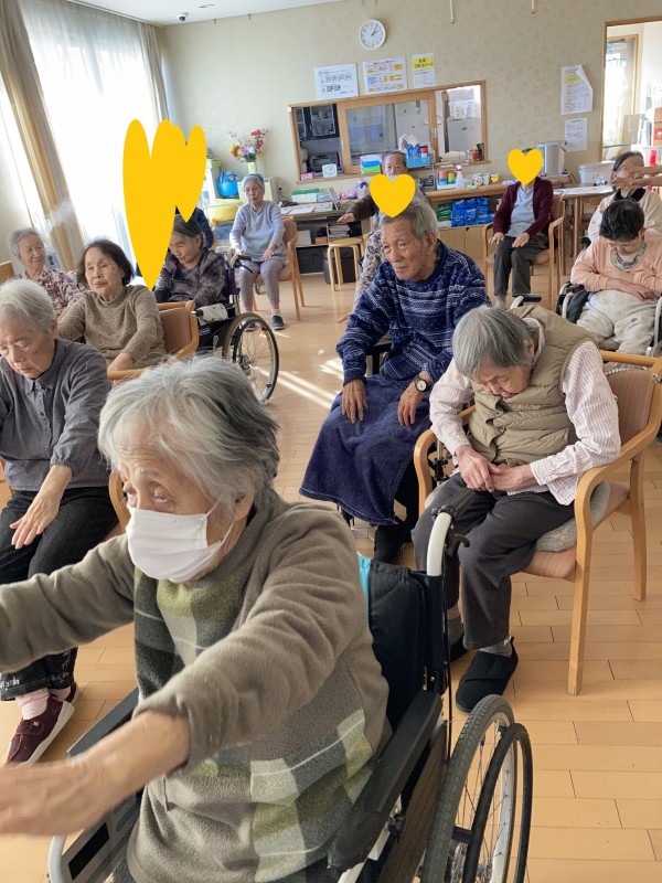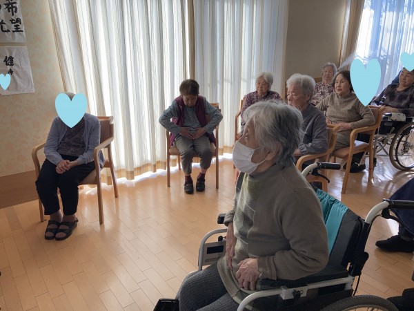 2階のご利用者様も1階へ降りて頂き、全員で参加しました!!
