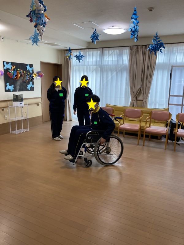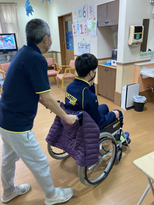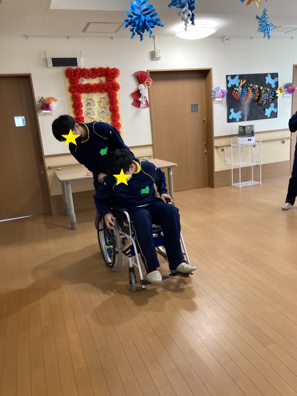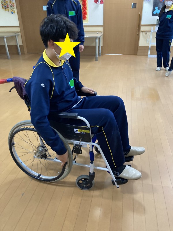 学生の皆さん、車椅子を体験してみましょう(^_^)/