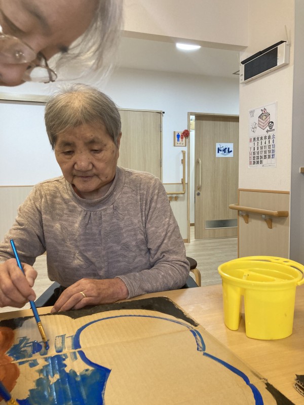 ダンボールに絵の具を塗って作成しました!