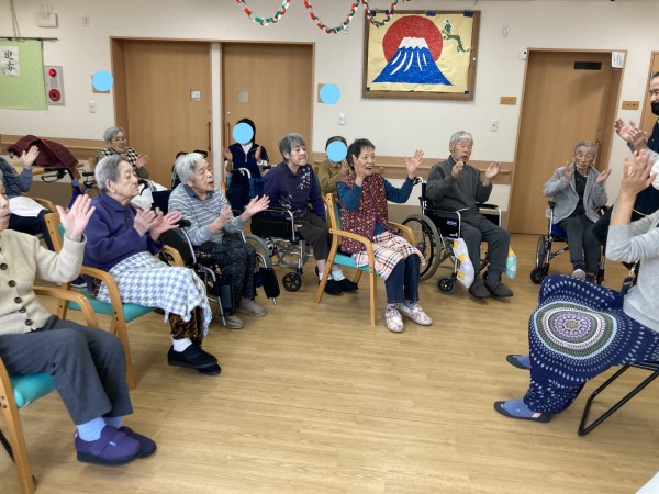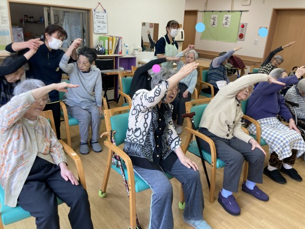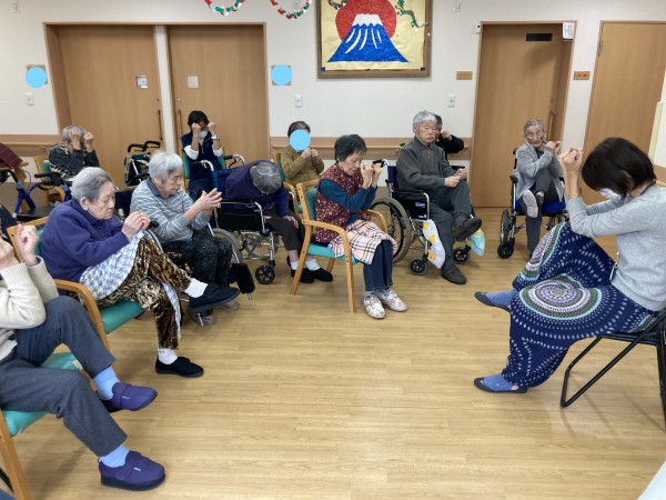 太田講師がGH稲城長沼に来てくれ、1・2階合同でヨガを行い