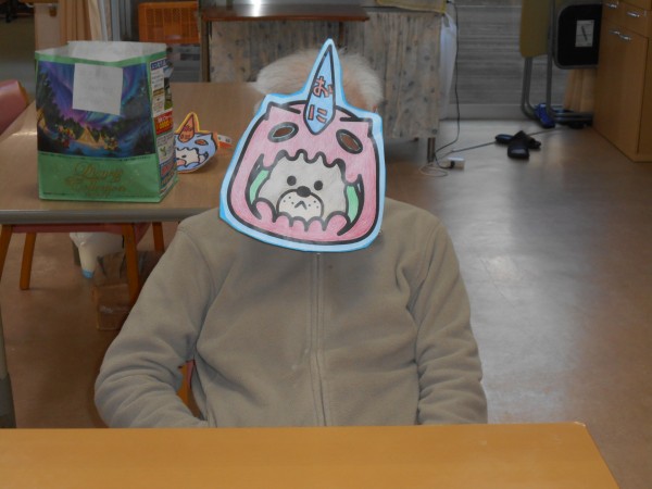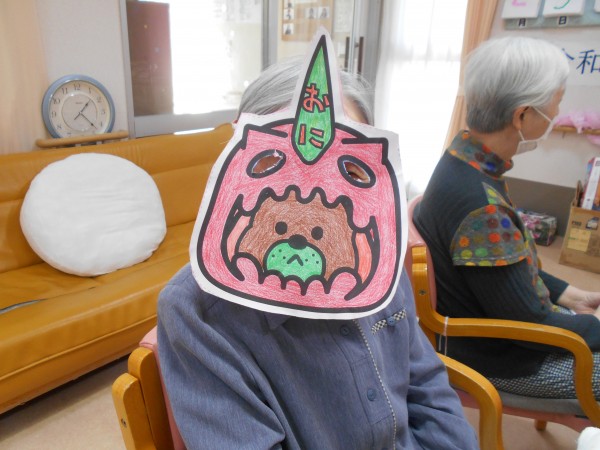 皆さまで鬼のお面をかぶったり、鬼の職員に皆様で豆まきを行ったりしました。