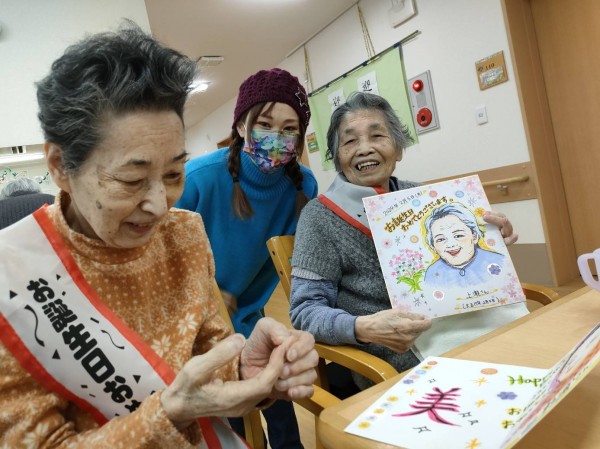 先日のお誕生日会に、似顔絵を描きに来てくれた時の様子です。